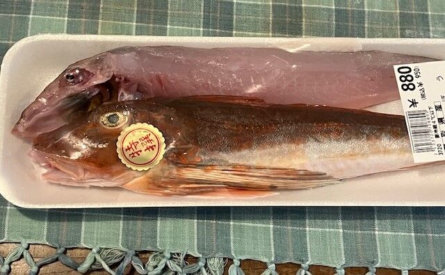 買い物は牛乳だったのですが、魚も覗いてみて、何か食べたいものがあったら買ってきて、と言われて、魚屋さんも覗いてみました。鰈、鯛、甘鯛、鰤、イサキ、鮭、カンパチ、鯖、秋刀魚等々とみなれた魚が並んでいましたが、ひとつだけ、食べたことがない(と思われる)魚がありました。