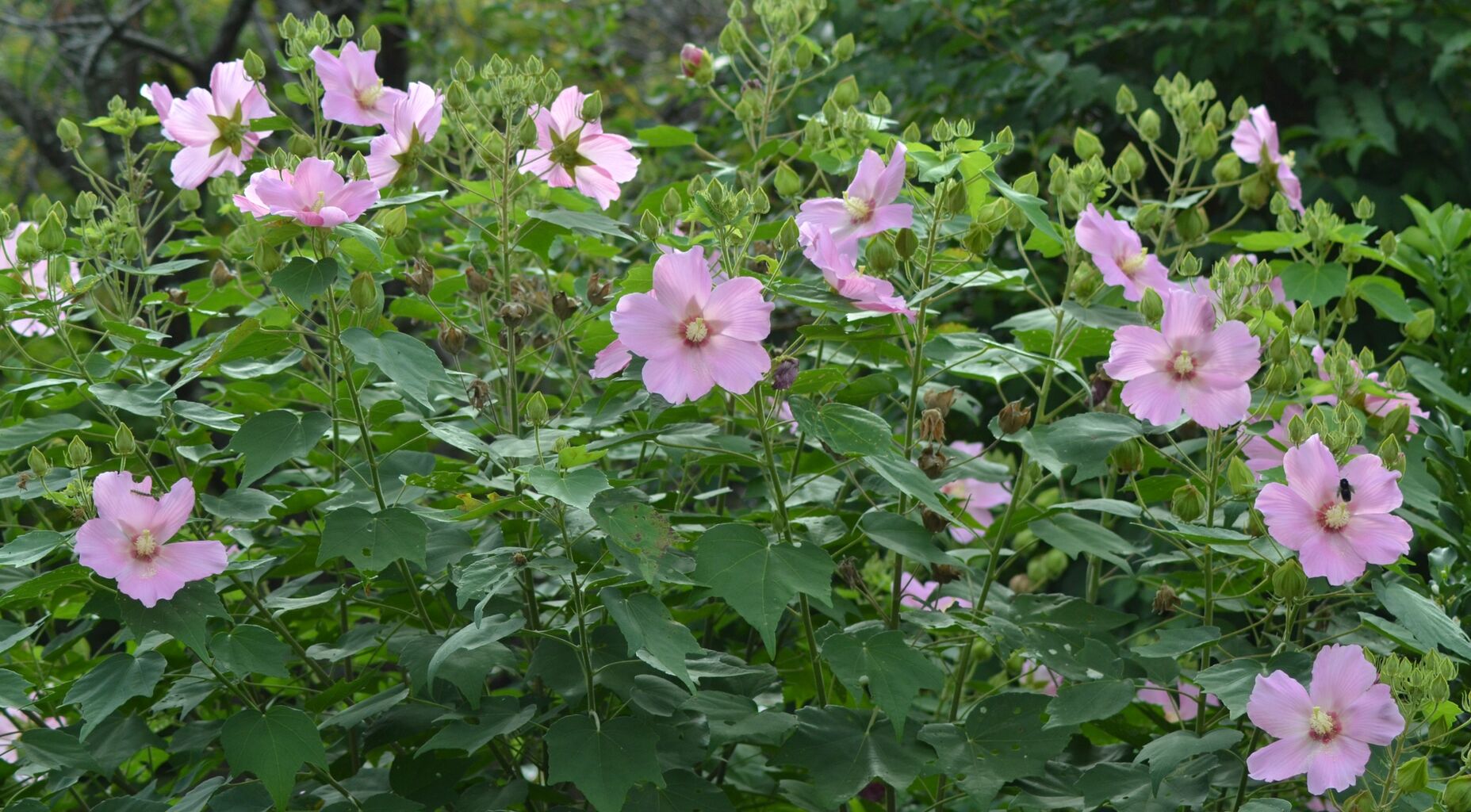 きょうも芙蓉がたくさん咲いています。とくに最上辺のあたりに密集しています。